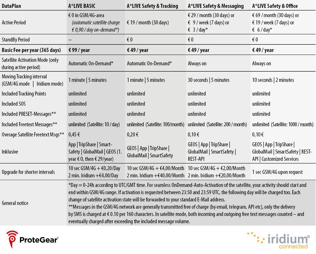ProteGear provides all data plans globally - For utilisation of the A*LIVE You need an active data plan.