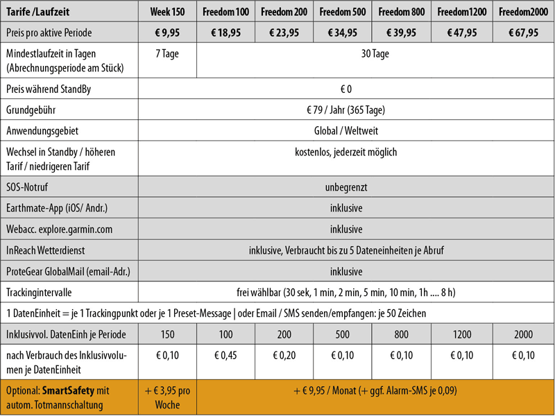 | Leistungsvergleich ProteGear / Garmin Tarife | ProteGear Tarif | Garmin Tarif |